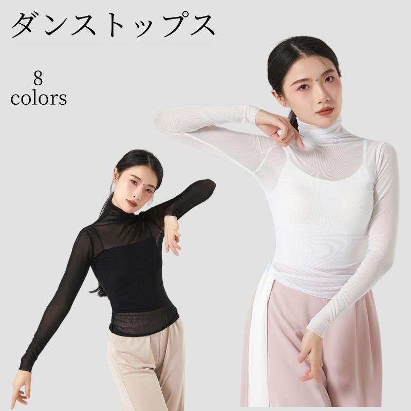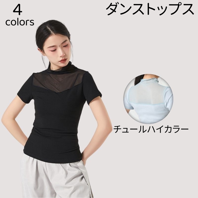 バレエ トップス チュールタートルネック レディース 社交ダンス 練習着 社交ダンス衣装 トップス バレエ練習着 トップス レッスン着 ストレッチ ヨガ衣装 ダンスTシャツ モダンダンス
