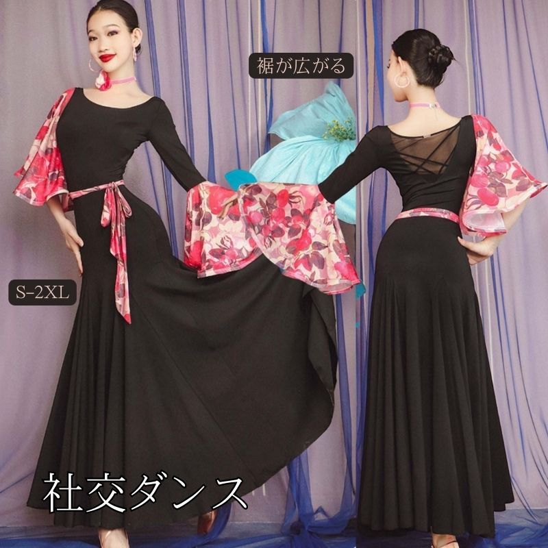 スタンダードドレス 社交ダンス レディース ダンスドレス レディース 競技ダンス 発表会 コンテスト コンクール エレガント 大合唱衣装 フラワー衣装 モダンダンス 衣装 開場ドレス