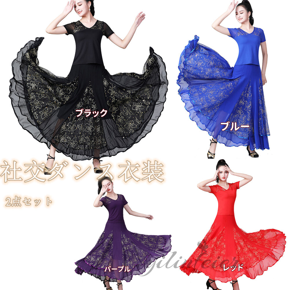 社交ダンス レディース ダンスドレス 衣装 ワルツ ワンピース イベント 大きい裾 モダン ドレス 社交ダンス衣装 広がる裾 スタンダード レッスン着 演出用 高級感 踊りドレス 大人気