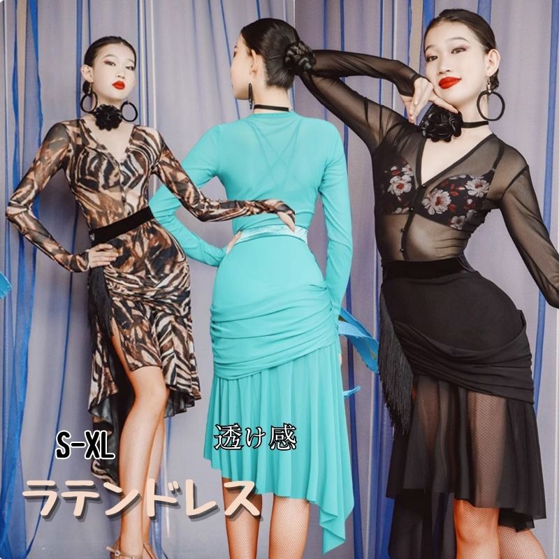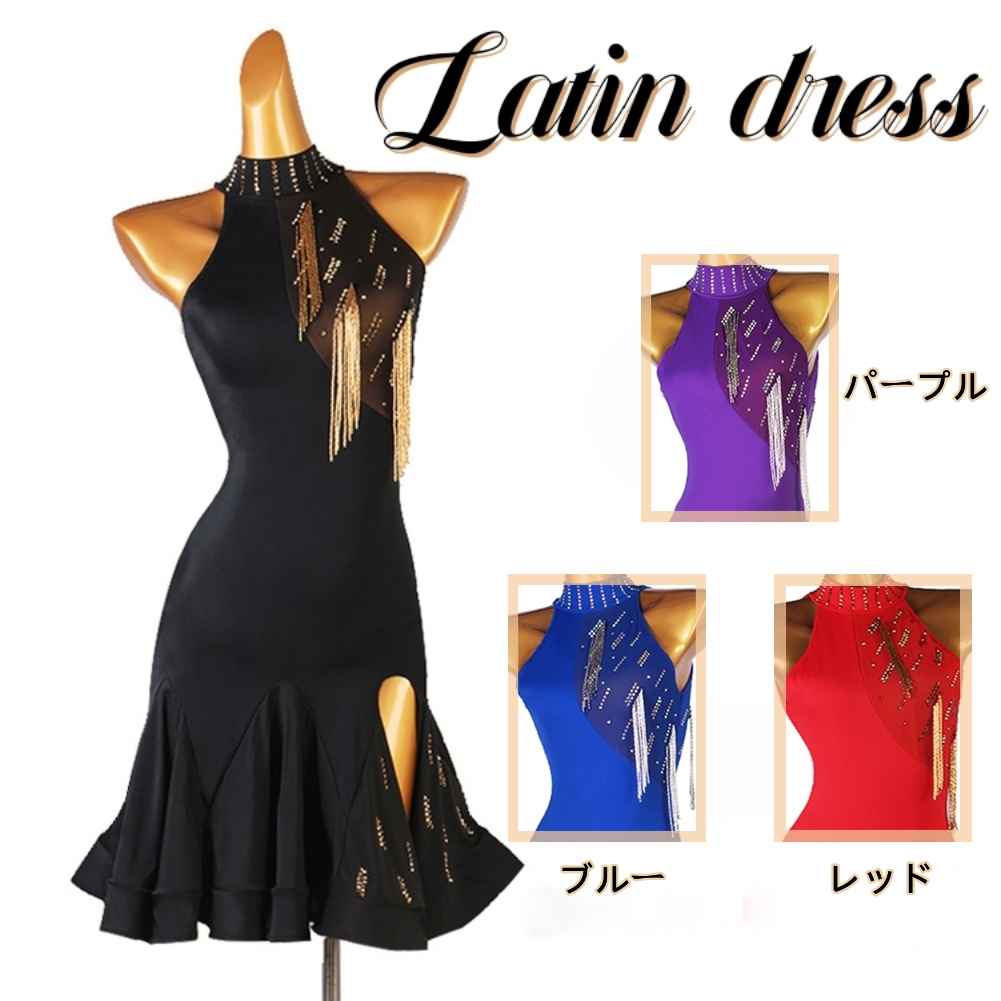 フリンジ ラテンダンスドレス ラテンドレス レディース ラテン衣装 ボリューム感裾 サンバドレス 痩せラテン衣装 練習服チャチャ サルサ ルンバ 競技 社交ダンス レッスン着 ダンスウェア