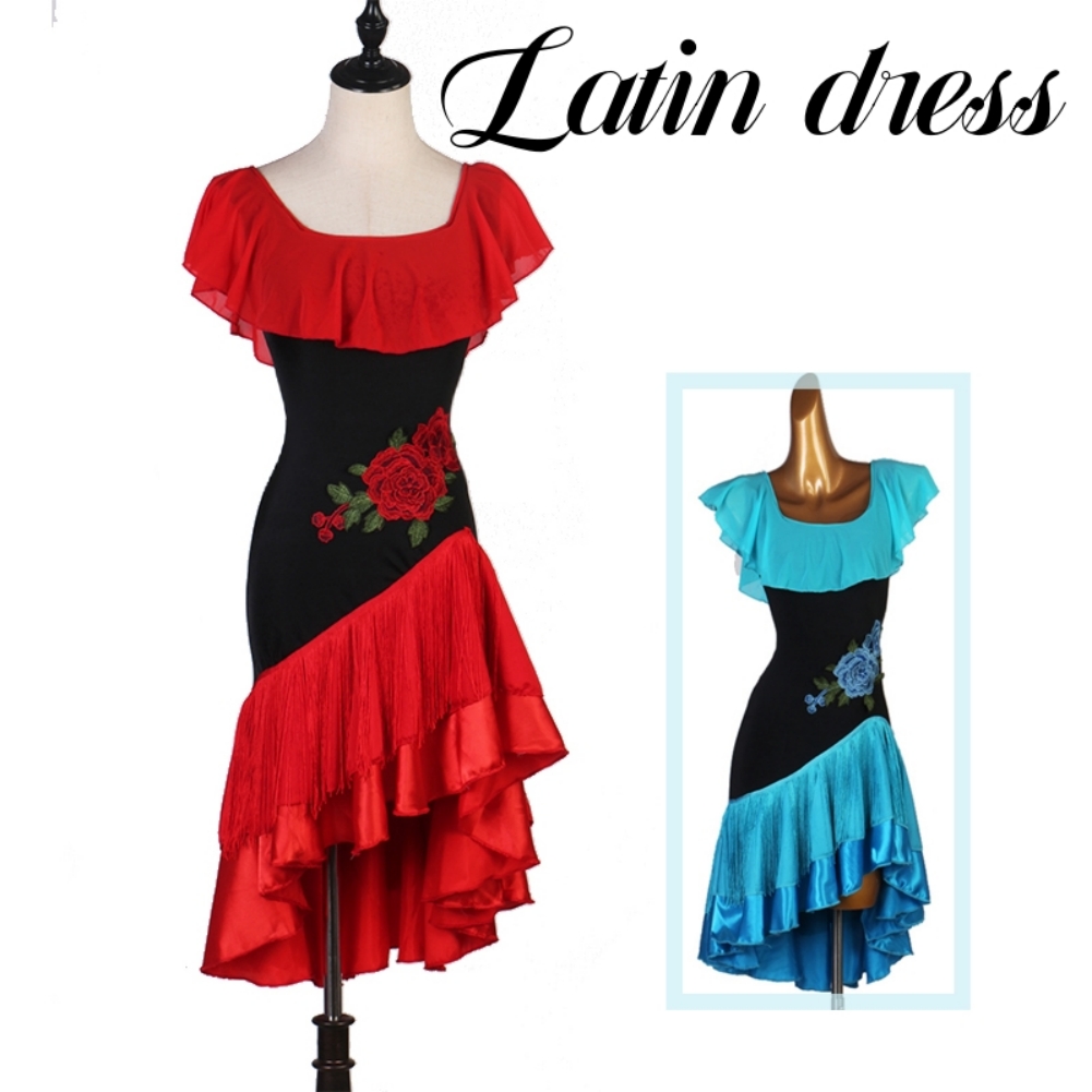 ラテンダンス発表会用ドレス ワルツ ラテン系 ダンスドレス ワルツ用 社交ダンスドレス 発表会用 競技ダンス 豪華 大合唱 フラワー ラテン 開場ドレス ワンピース衣装 ラテンワンピース