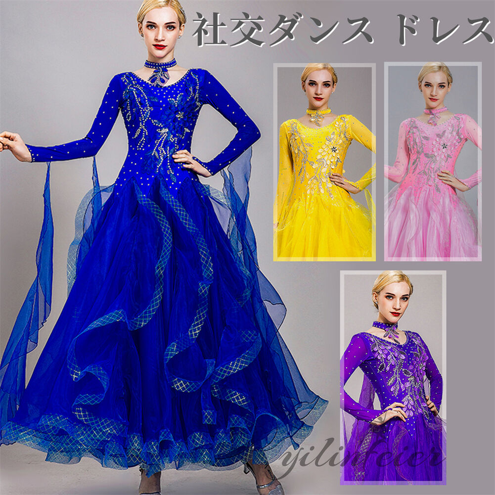 スタンダードドレス 社交ダンス レディース ダンスドレス レディース 競技ダンス 発表会 コンテスト コンクール エレガント 大合唱衣装 フラワー衣装 モダンダンス 衣装 開場ドレス