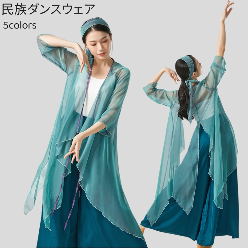 ダンス レッスン着 シアー プルオーバー ダンスパンツ グラデーションカラー トップス ネック クラーデション 練習着 コンテンポラリーダンスウェア 古典舞踊衣装 民族ダンスウェア