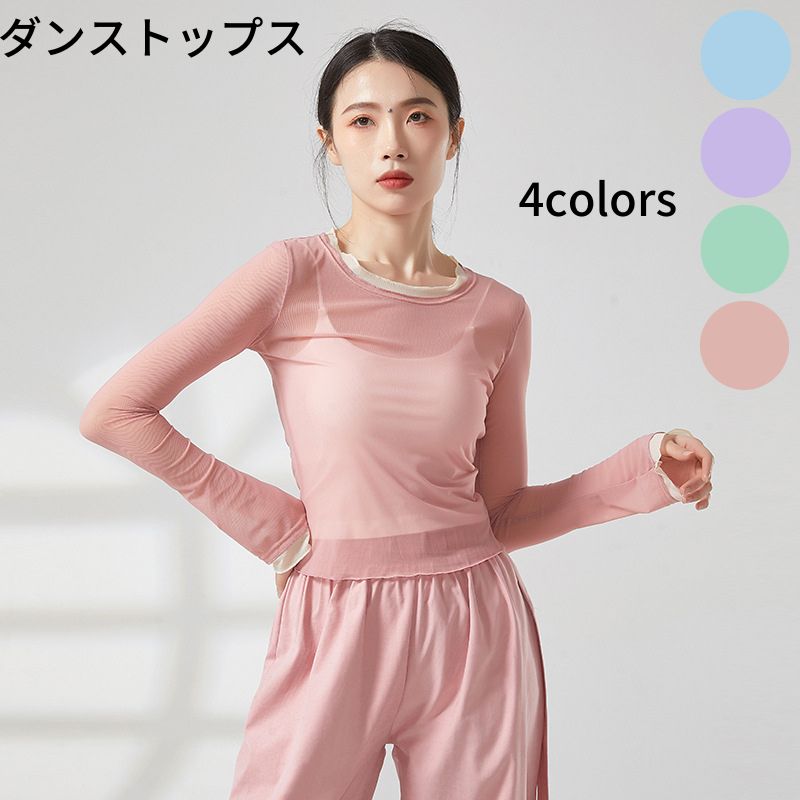 ダンス レッスン着 シアー プルオーバー バレエ トップス クラーデション 練習着 コンテンポラリー 古典舞踊衣装 民族ダンスウェア 透け感 シースルー ストレッチメッシュ 長袖