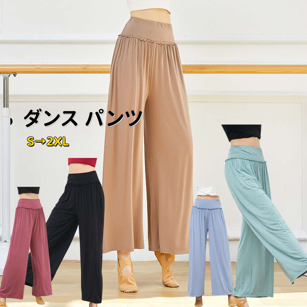 ダンスパンツ レディース ワイドパンツ ガウチョパンツ ロング丈 ウエストゴム ボトムス ダンス着 ジャズダンス バレエパンツ ヨガパンツ ダンスウェア 踊りパンツ 社交ダンスパンツ