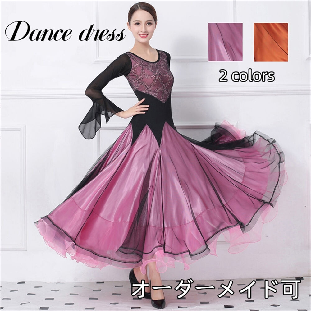 社交ダンス レディース ダンスドレス 衣装 ワルツ ワンピース イベント 大きい裾 モダン ドレス 社交ダンス衣装 広がる裾 スタンダード レッスン着 演出用 高級感 踊りドレス 大人気