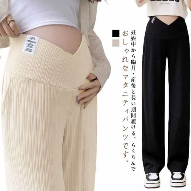 産前産後兼用 で 楽ちん マタニティ ワイド パンツ マタニティウェア 妊婦服 産前 産後 お腹リブ カット