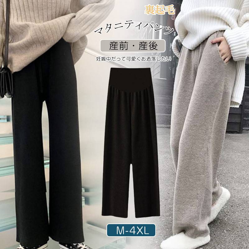 産前産後兼用 お腹楽ちん 秋冬服 裏起毛 暖かい 防寒 マタニティパンツ マタニティー ズボン ボトムス ワイドパンツ ウエスト調節可能 大きいサイズ ゆったり M-4XL
