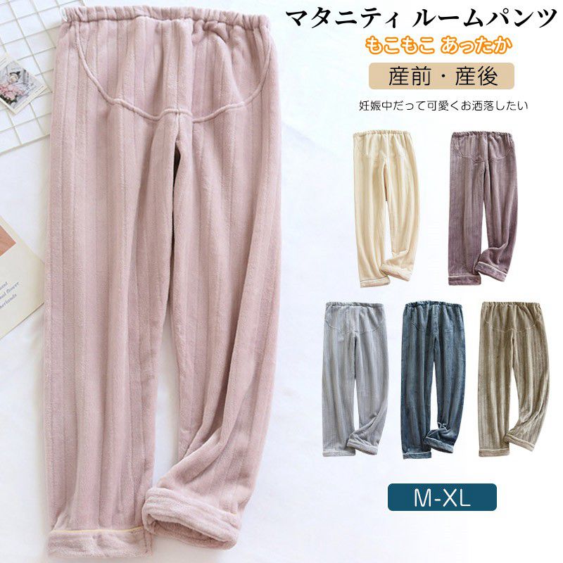 マタニティ パンツ もこもこ ルームパンツ ルームウェア パジャマ レディース あったか 秋冬 ゆったりサイズ ウエスト調整 裾口ゴム 無地 M L XL