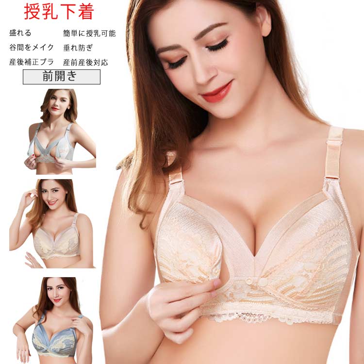 授乳対応ブラ 産後補正ブラ 育乳 授乳 マタニティ授乳下着 ブラジャー 前開き 脇 背中すっきりノンワイヤー 妊婦 産前産後 レース付き 下垂対策 産後