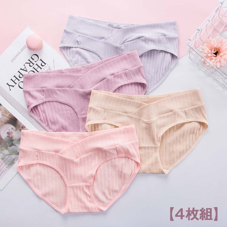 4枚セット マタニティショーツ 綿 下着 パンツ ローライズ 妊娠初期 無地 出産準備 可愛い インナー コットン 妊娠用 産前産後 妊婦 出産祝い 4色入 マタニティ