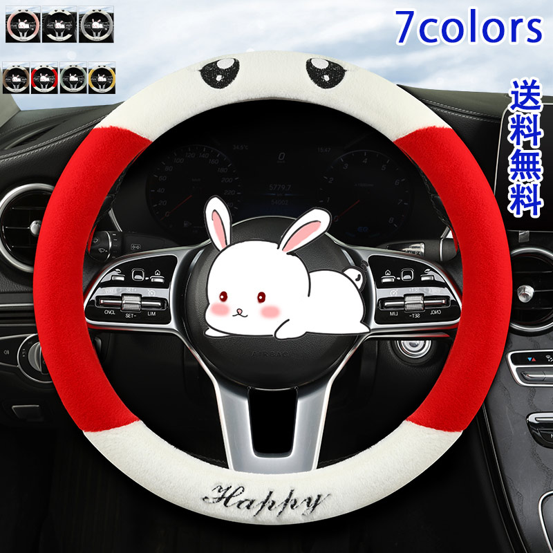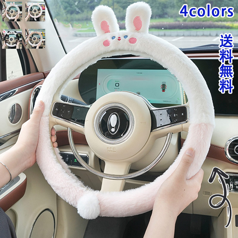 ハンドルカバー ふわふわ もこもこ 兎 人参 ステアリングカバー エコファー 軽自動車 普通車 防寒 暖かい 冬用 秋用 きれいめ おしゃれ