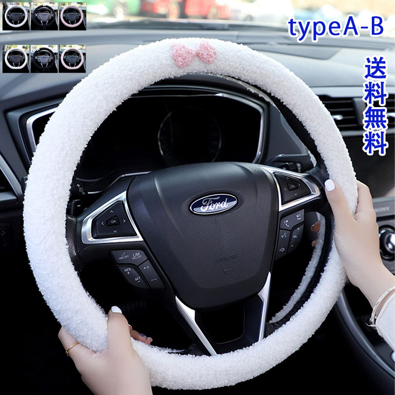 ハンドルカバー 蝶結び ふわふわ冬用 ハンドルカバー 軽自動車 ステアリングカバー 滑りにくい 手触り おしゃれ