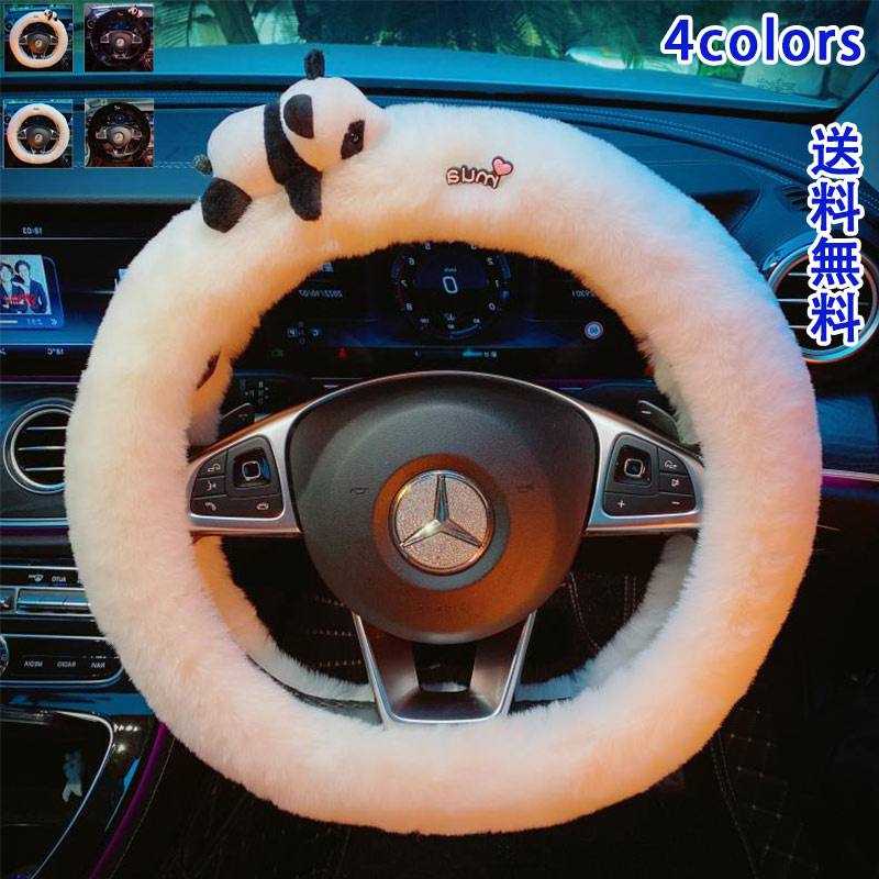ハンドルカバー ふわふわ もこもこ パンダ 刺繍 ステアリングカバー エコファー 軽自動車 普通車 防寒 暖かい 冬用 秋用 きれいめ おしゃれ