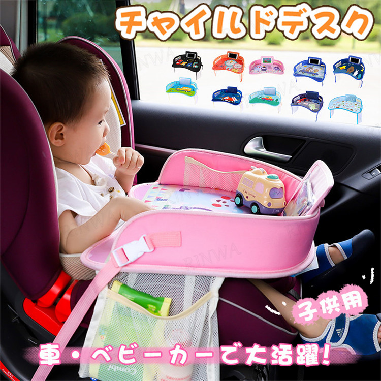 チャイルドトレイ ベビー 赤ちゃん ベビーカー 車載テーブル カーテーブル 簡易テーブル 子供 ポケット ベルト付き 多機能 トレー 作業台
