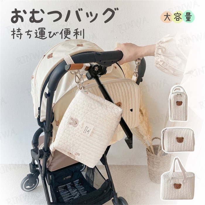 マルチポーチ バッグインバッグ サニタリー ポーチ キルティング 刺繍 お祝い クラッチバッグ クラッチポーチ ダブルストラップ くま りす お花 哺乳瓶 洗える ママグッズ シンプル