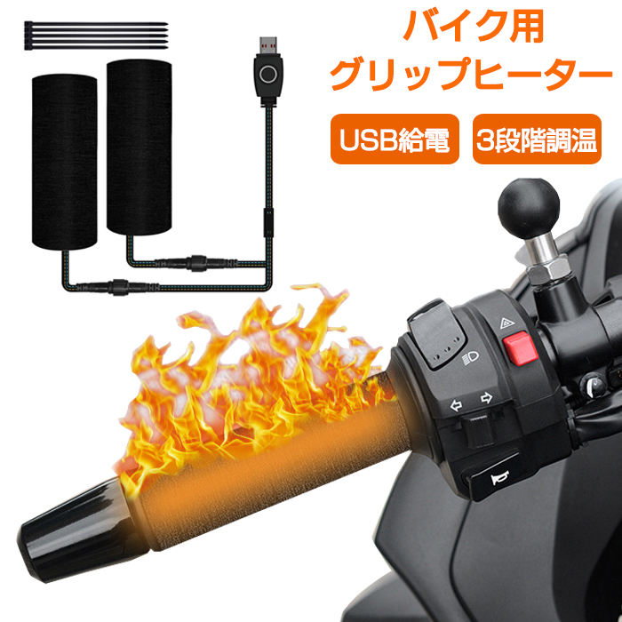 バイク グリップヒーター 巻き付けタイプ USB給電 急速発熱 防水IP67 温度制御 水洗いOK車用品 バイク用品 バイク用品 バイクウェア プロテクター プロテクター
