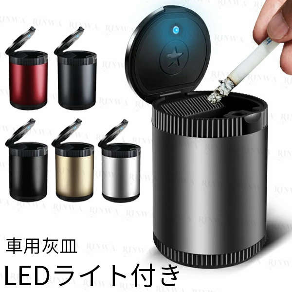 灰皿 車用灰皿 蓋付き 火消し LEDライト ドリンクホルダー型車用品 バイク用品 車用品 アクセサリー 灰皿