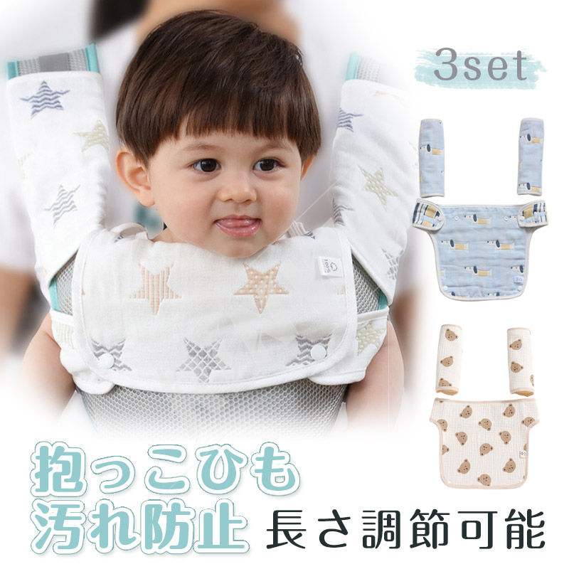 抱っこひも よだれカバー 抱っこ紐 おんぶ紐 綿100% 胸当て付き よだれパット リバーシブル 着脱 簡単 3点セット