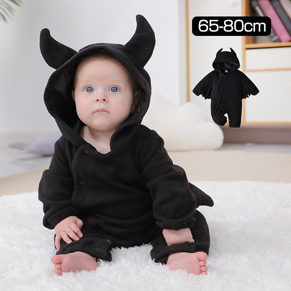 ベビー服 子供 ロンパース ベビー 悪魔 コスプレ フード付き コウモリ ベビー服 ハロウィン コスプレ あったか カバーオール オールインワン 男の子 女の子 もこもこ 秋冬 パジャマ ベビーウェア