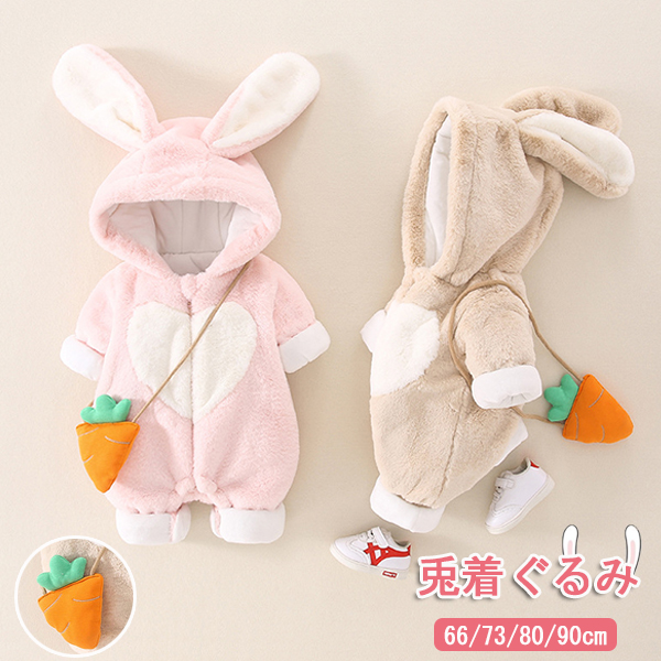 ロンパース ベビー ウサギさん 着ぐるみ 裏ボア フード付き ベビー服 新生児服 あったか カバーオール 男の子 女の子 ロンパース ボア もこもこ 寝袋 秋冬 パジャマ