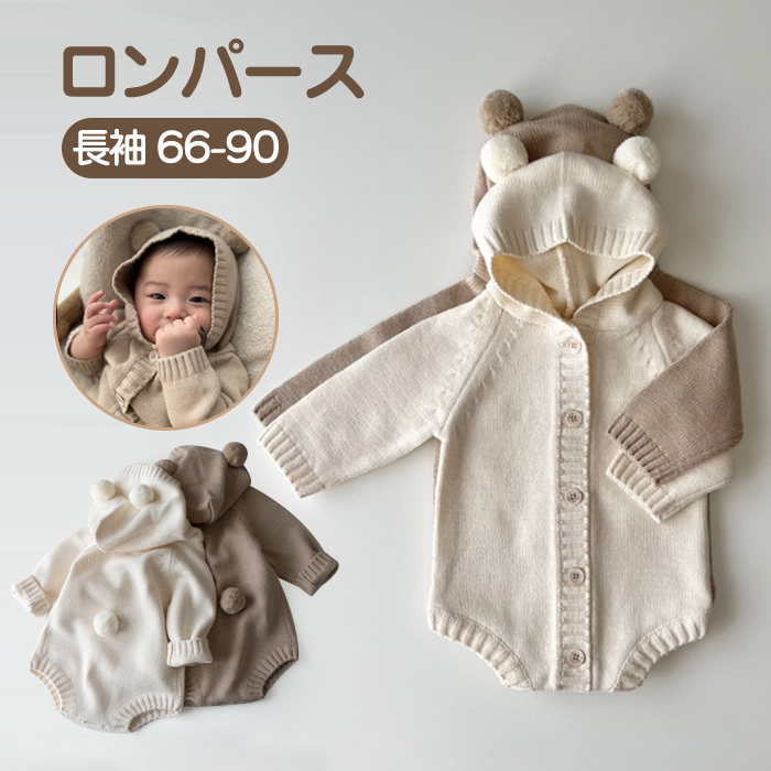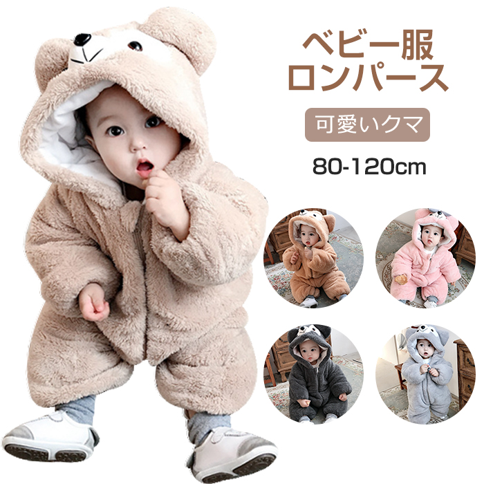 ロンパース ベビー 着ぐるみ 耳付き 着ぐるみ 裏起毛 ベビー カバーオール フード付き ベビー服 新生児服 あったか 男の子 女の子