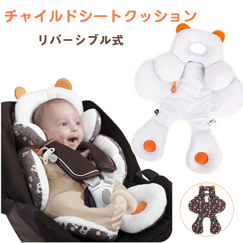 かわいいクマさんの形をしたチャイルドシート用ベビークッション~リバーシブル式で季節を問わずご利用頂けます