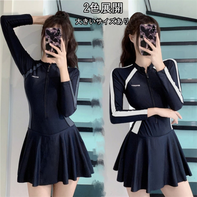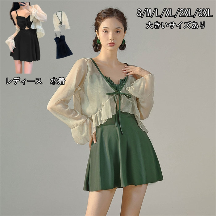 3色水着 レディース 女の子 体型カバー みずぎ ノースリーブ 長袖 トップス セクシー カバーアップ スクール スカート ブラウス ビーチ バックシャン 女性向け 太もも ママ水 S M L XL
