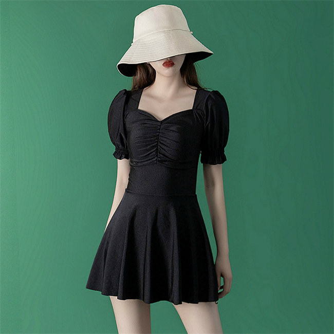 黒パッド付き 水着 体型カバー ワンピース 黒 ブラック レディース 通販 おしゃれ レディース水着 20代 30代 40代 50代パンツ付き大きいサイズ体型カバーレディース水着カップ付き-3サ