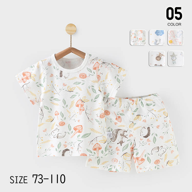 ベビー キッズ パジャマ 半袖 夏 70 80 90 100 110 保育園 幼稚園 小学生 ルームウエア 子供服 子ども服 上下セット 寝巻 こども かわいい
