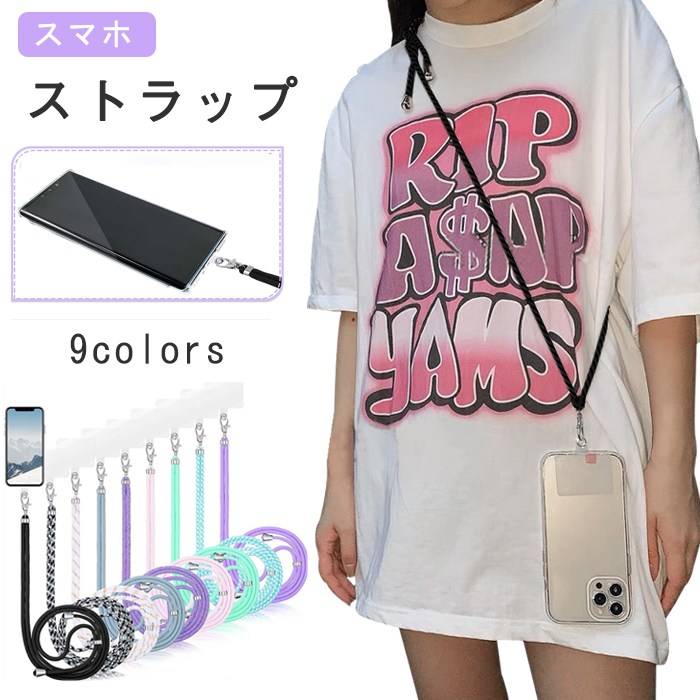 スマホストラップ 全機種対応 長さ調節 肩がけ 斜めがけ 首がけ ロープ ネックショルダー 軽量 オシャレ かわいい 便利 おすすめ 人気 韓国