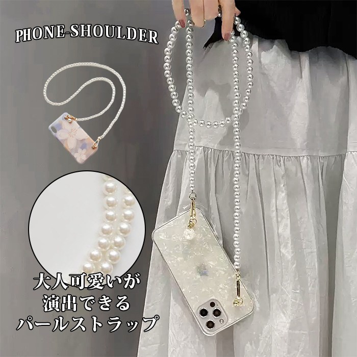 パールチェーン パールストラップ スマホストラップ パール 10mm チェーン スマホショルダー おしゃれ 肩掛け 落下防止 120cm 交換用 アクセサリー