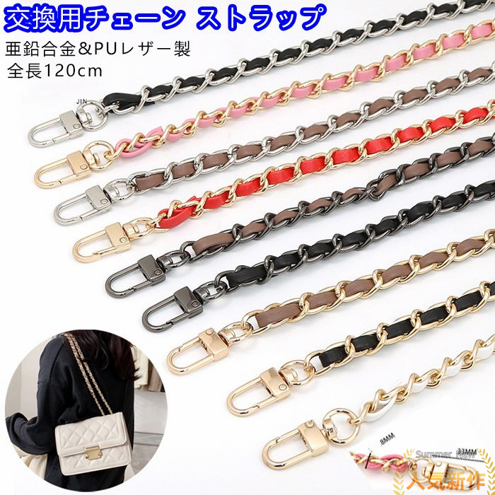チェーン ストラップ ストラップ スマホ バッグチェーン ハンドバッグ ショルダーバッグ 交換用 チェーン ベルト レザー+金属製 持ち手 ハンドル ストラップ 取り外し可能 大人 女子 肩掛け