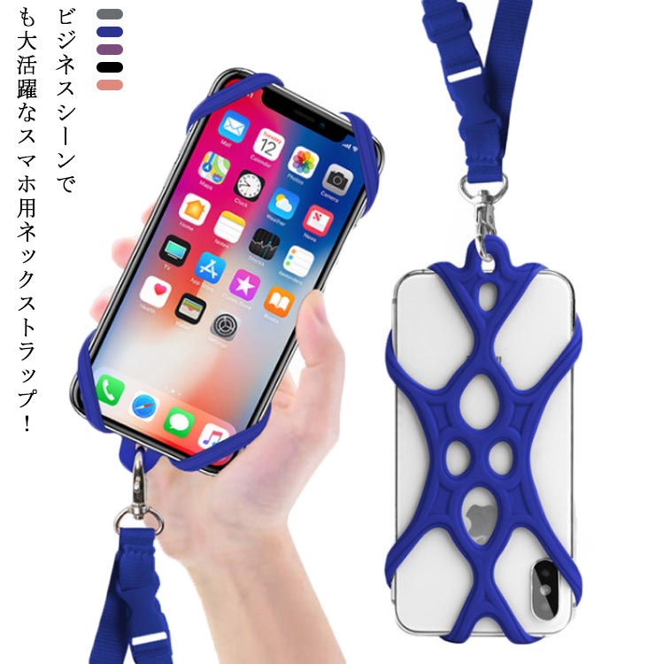 スマホストラップ 首かけ シリコン 取り外し スマホネックストラップ 首掛け 長さ調節可 固スマートフォン タブレット スマートフォン 携帯電話アクセサリー ストラップ マスコット