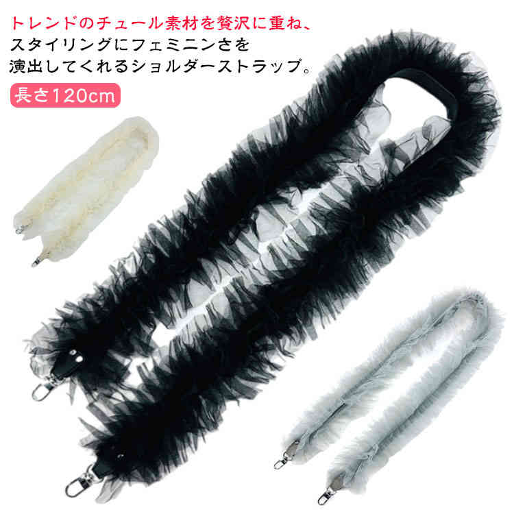 トレンドのチュール素材を贅沢に重ね、スタイリングにフェミニンさを演出してくれるショルダーストラップ 可愛い色合いでボリューム感のあるデザイン♪チュール フリル ストラップ