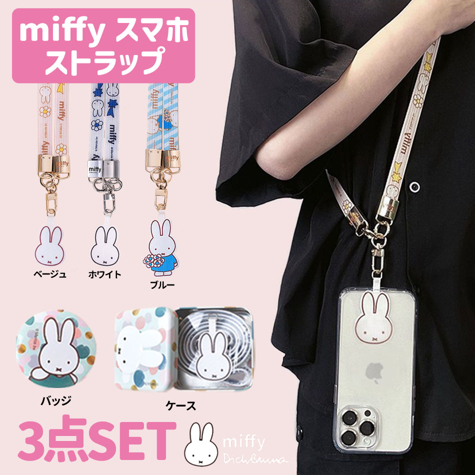 ミッフィー スマホショルダー ハンド ストラップ はさみ込むタイプ miffy ケース ホルダー 肩掛け ストラップ 太め ホルダー iPhone かわいい 大人 透明ケース ケース付き スマホ 紐