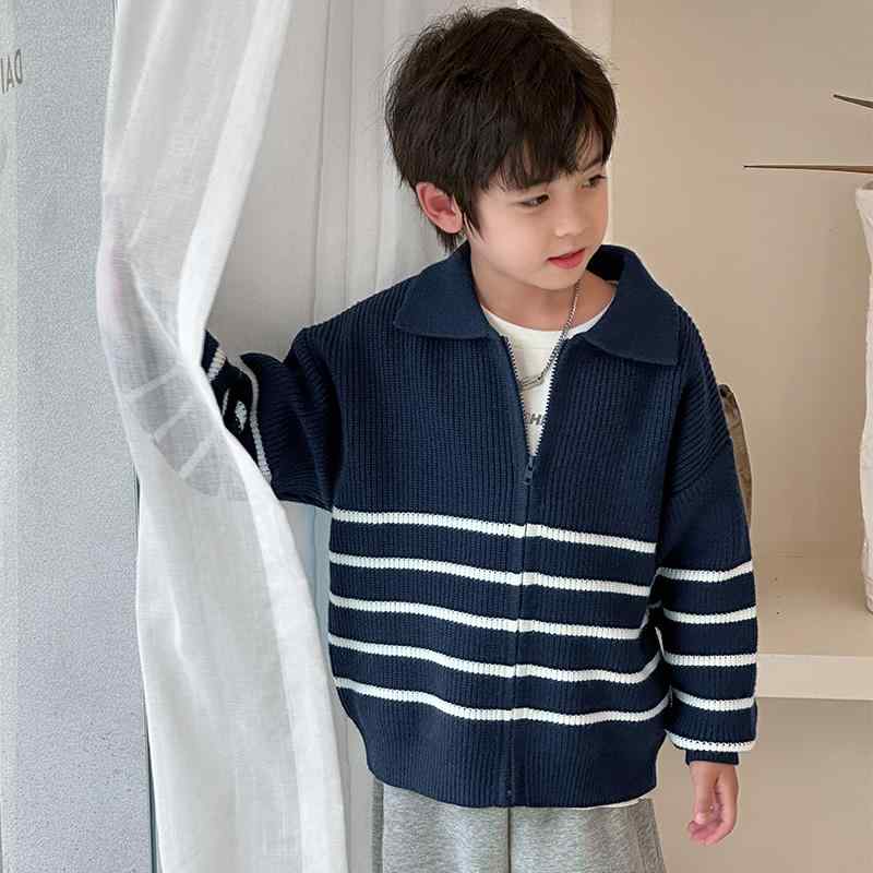 セーター ジャケット ストライプ カラー ジップ カーディガン 秋冬 新作 子供服 韓国 韓国スタイル トレンディ