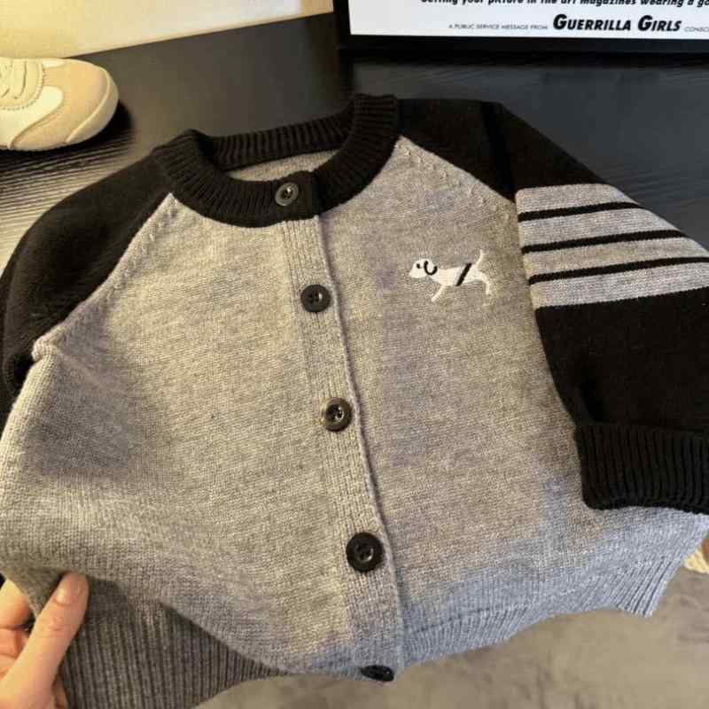 セーター 子犬 カラーブロック カーディガン 子供服 韓国 赤ちゃん キッズ ラウンドネック 長袖 お揃い 幼児 保育園 幼稚園