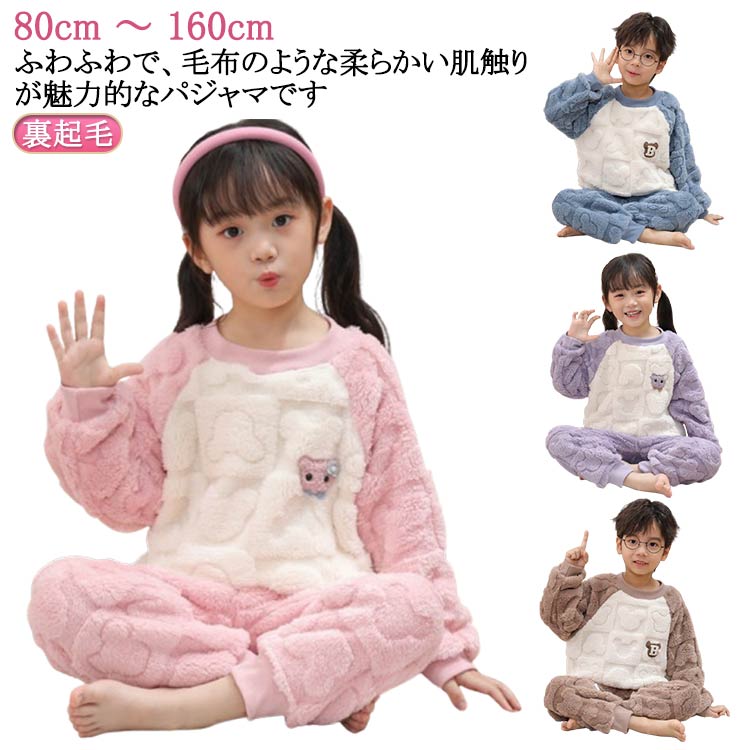 110-180 もこもこパジャマ 上下セット 子ども服 暖かい 部屋着 ウエストゴムキッズ ベビー マタニティ キッズファッション ナイトウェア ルームウェア パジャマ