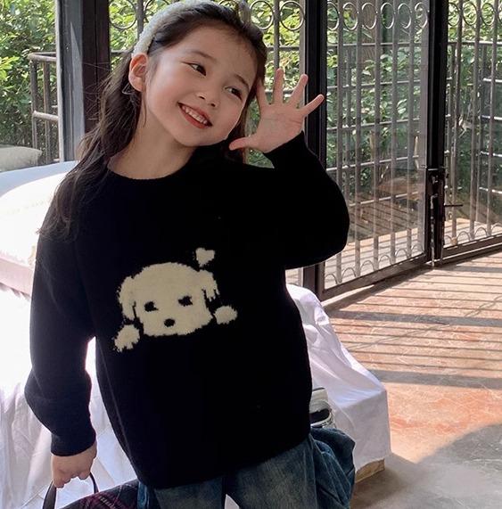 女の子 ルーズシルエット ニット プルオーバー 犬柄 セーター 秋冬 新作 子供服 ファッショナブル 韓国 韓国スタイル お洒落 可愛い かわいい カジュアル 大きいサイズ キッズ ラウンドネック 長
