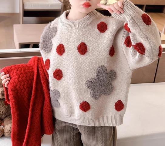 ニット プルオーバー 水玉 花 柄 セーター 秋冬 新作 子供服 ファッショナブル 韓国 幼児 保育園 幼稚園 小学生 学校