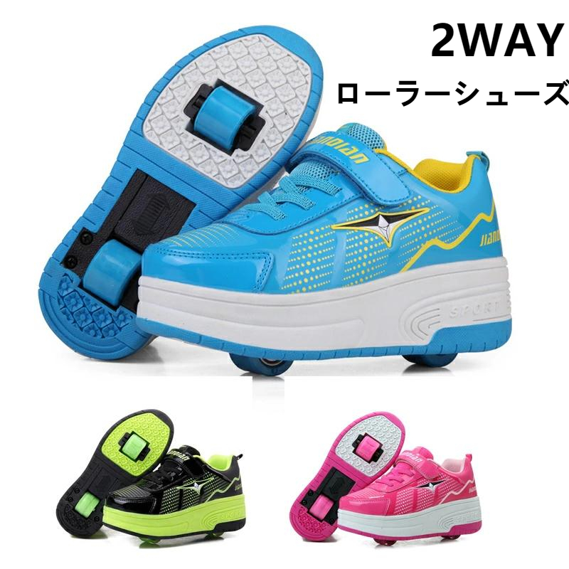ローラーシューズ ローラースケート キッズ 大人メンズ 男女兼用 スニーカー ギフト2輪グリーンピンクブルー靴 女の子 子供用運動靴 スポーツ --6108-