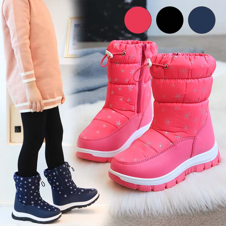 スノーブーツ キッズ 女の子 ムートンブーツ 子供 スノーブーツ ガールズ 裏ボア ジュニア レディース 裏起毛 雪遊び 無地 男の子 スノー柄 ブーツ アウトドア カジュアル 黒 ブルー