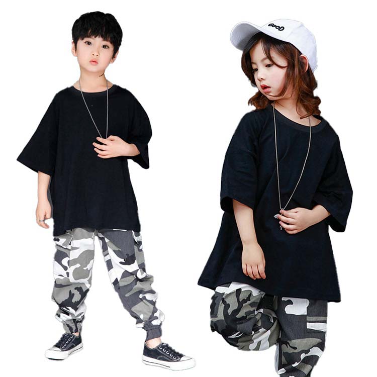 HIPHOP ゆったり半袖Tシャツ 女の子 ジャズダンス衣装 ヒップホップダンス衣装 男の子 2点セット 子供ジュニア舞台ダンス衣装 学園祭イベントステージ衣装 子供ダンス衣装
