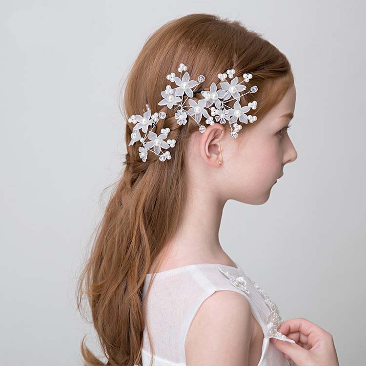 髪飾り ヘアピン アクセサリー 花 フラワーティアラ ピン 4本セット パーティー 女の子 子供 発表会 入学式 卒業式 結婚式