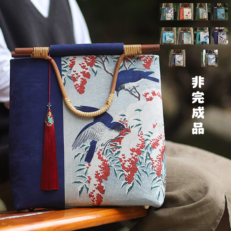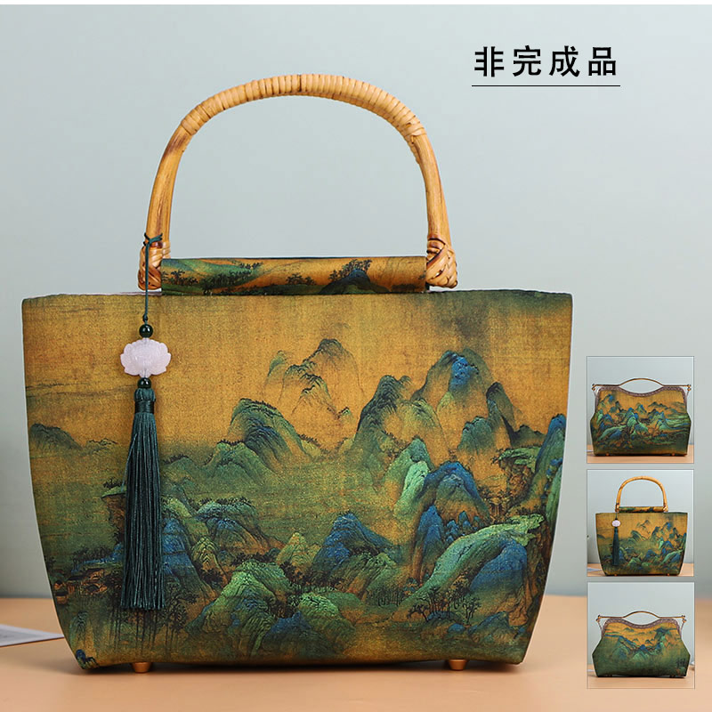 中国風古典バッグ 千里の江山 手提げ 竹持ち手 材料 手作りバッグ 小物 ブランド雑貨 バッグ レディースバッグ トートバッグ