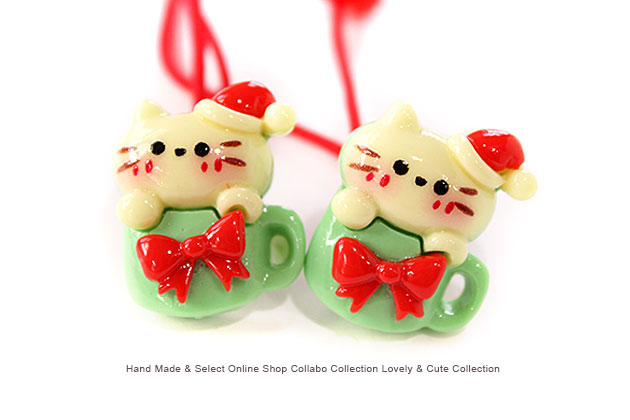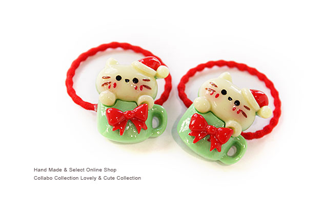クリスマスカップ猫ちゃんパーツデザイン ヘアゴム キッズ 子供 ヘアアクセサリー 髪飾り 髪留め 保育園 幼稚園 パーツ クリスマス 猫