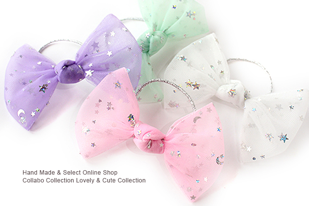 星柄チュール◎スクエアりぼんデザイン◎ラメゴム ヘアゴム キッズ 子供 ヘアアクセサリー 春夏 可愛い 髪飾り 髪留め チュール リボン