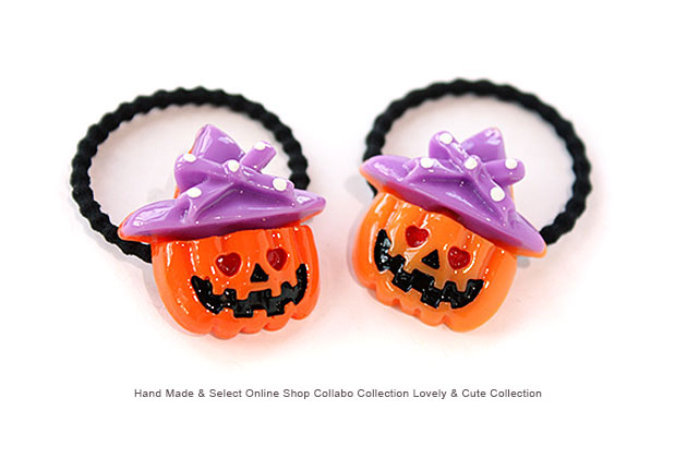 パープル帽子おばけカボチャパーツデザイン ヘアゴム キッズ 子供 ヘアアクセサリー 秋冬 可愛い 髪飾り 髪留め パーツ かぼちゃ ハロウィン おばけ