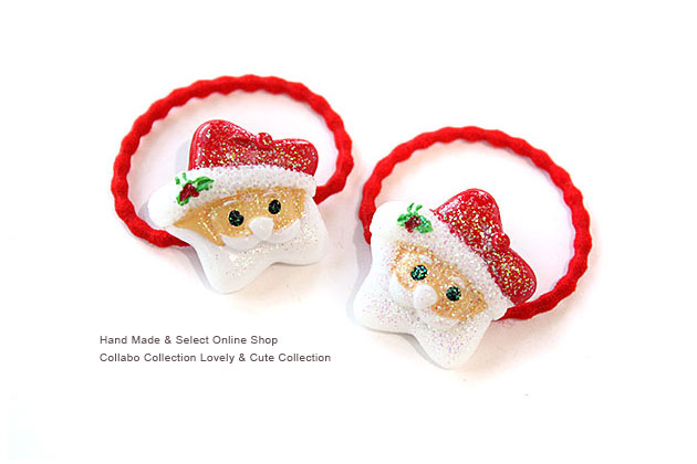 ラメ星型サンタさんパーツデザイン ヘアゴム キッズ 子供 ヘアアクセサリー 髪飾り 髪留め 保育園 幼稚園 パーツ クリスマス